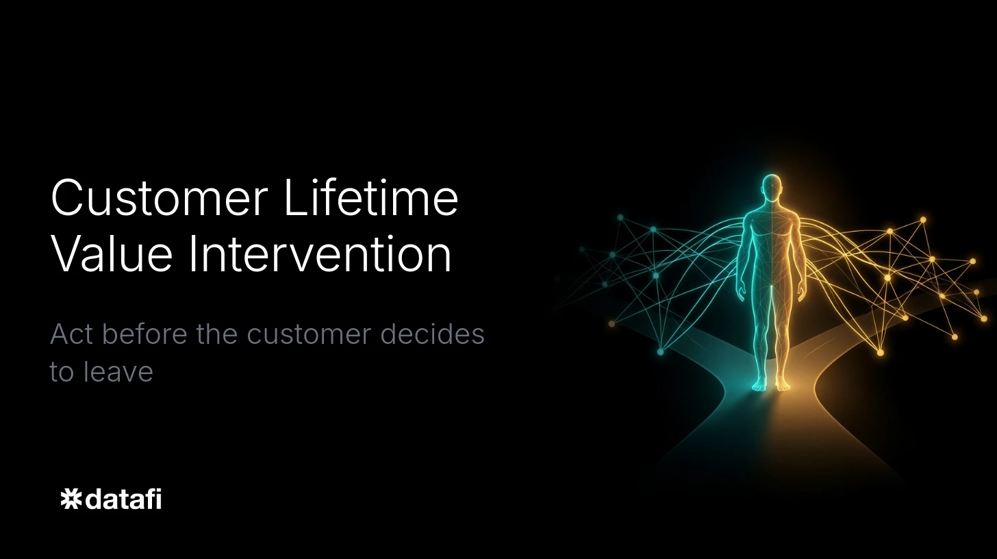 Learn how Datafi's AI platform enables real-time Customer Lifetime Value intervention, turning churn signals into actionable, orchestrated responses before it's too late.