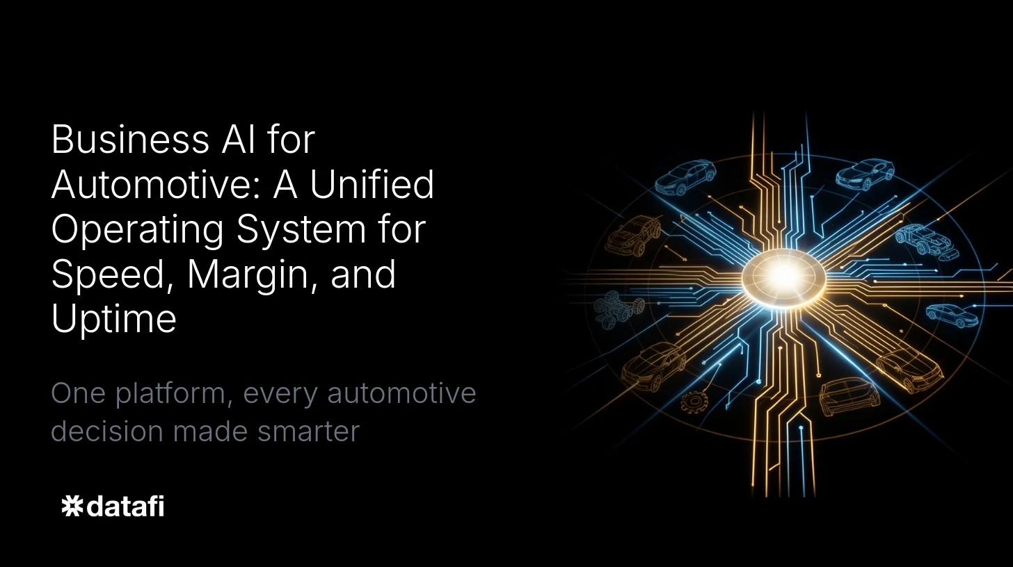Discover how Datafi's business AI platform helps automotive companies unify data, optimize margins, and improve uptime across every operation.